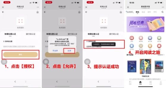 地理位置认证:点击【授权】,点击【允许】获取您的位置,即可开启阅读之旅~。