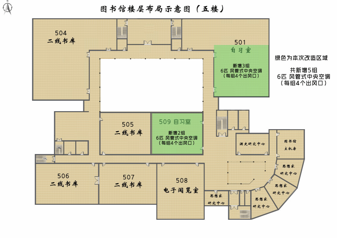 根据学校事业发展需要,为改善读者阅览环境,提升读者体验感,推动内涵式高质量发展,图书馆对江北校区学生集中的自习区域拟新增风管机。现就宜宾学院图书馆阅读环境改造项目,以校内比选的方式确定供应商。